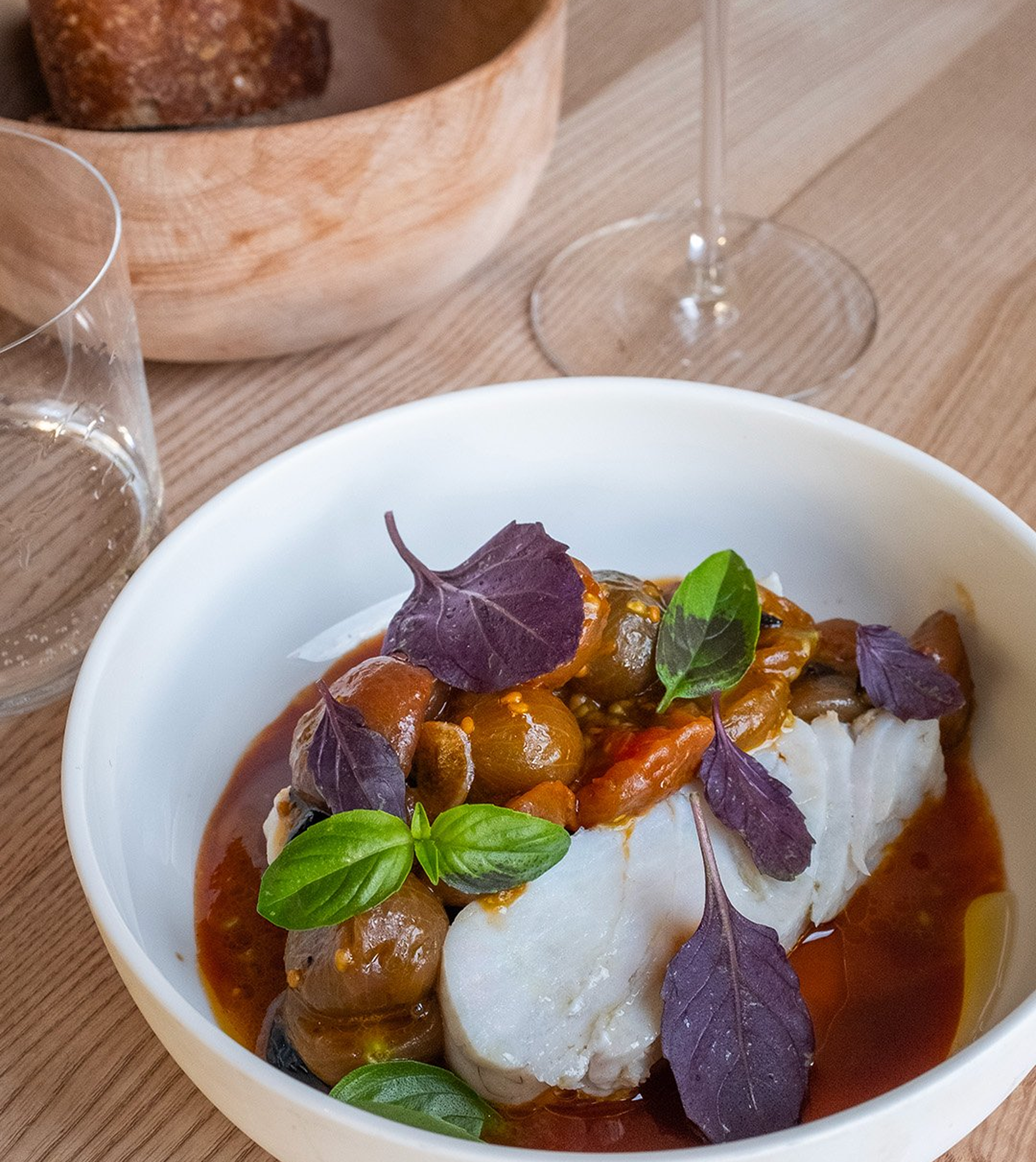 Pour accompagner le premier service, nous avons dressé une identité infusée par la cuisine de Choral.